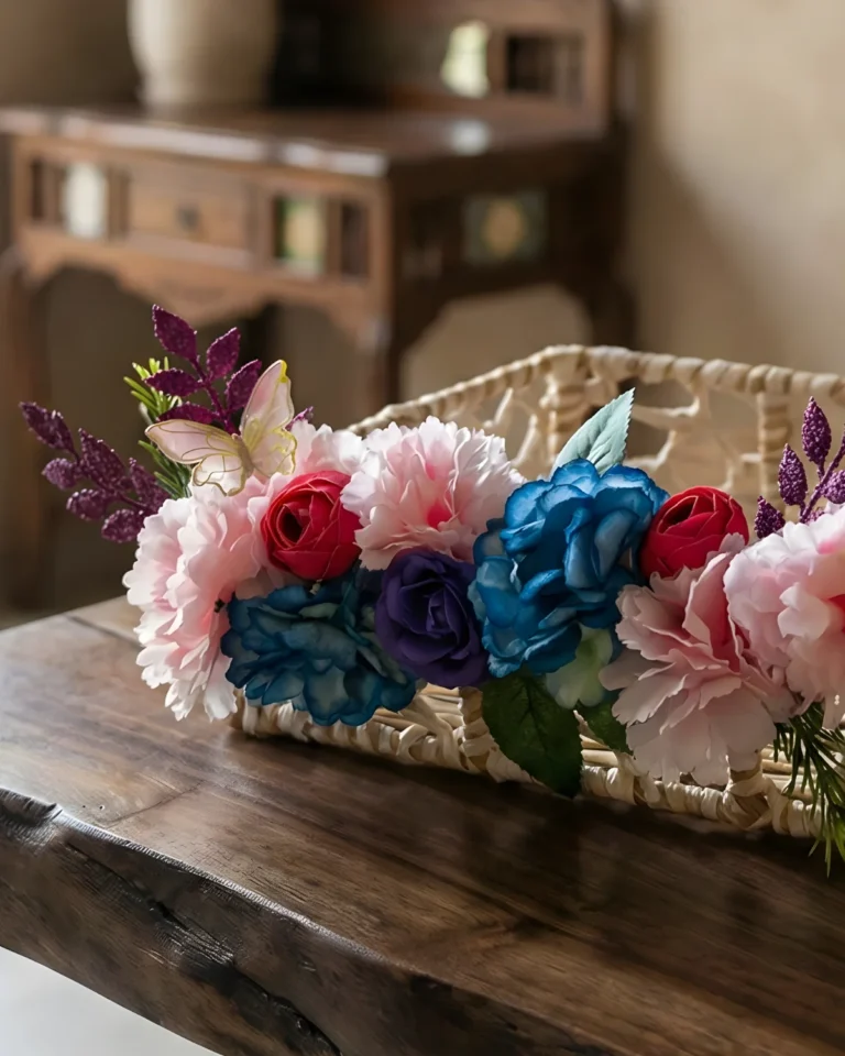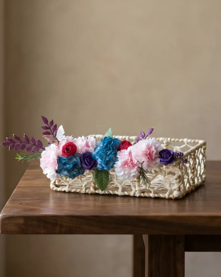 Handcrafted Wooden Snack Tray with Ceramic Floral Inlay & 3 Wooden Bowls