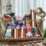 Celebrate the joy of gifting with our Premium Festive Gift Hamper, thoughtfully curated to delight your loved ones. Perfect for Diwali, weddings, anniversaries, or corporate gifting, this elegant basket blends traditional Indian sweets with modern gourmet treats and reusable copperware.